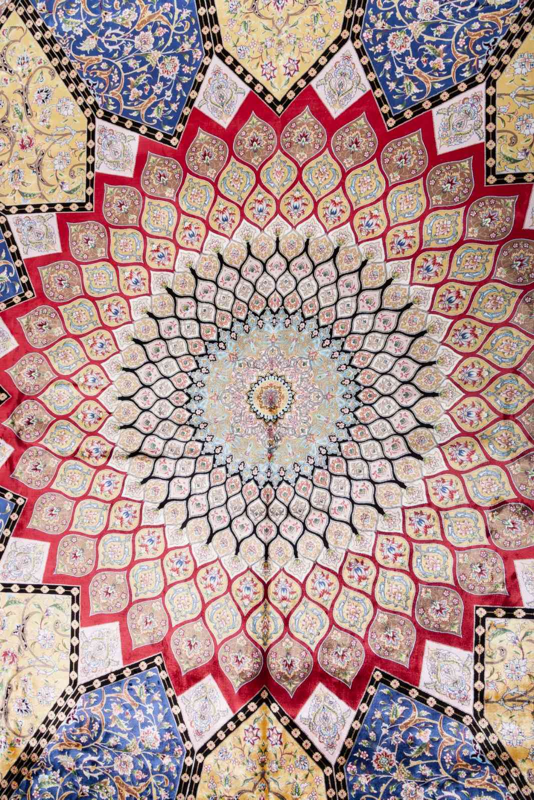 Crafted from pure silk and knotted with precision, Pamposh is not just a carpet it’s a tapestry of culture, devotion, and timeless beauty.